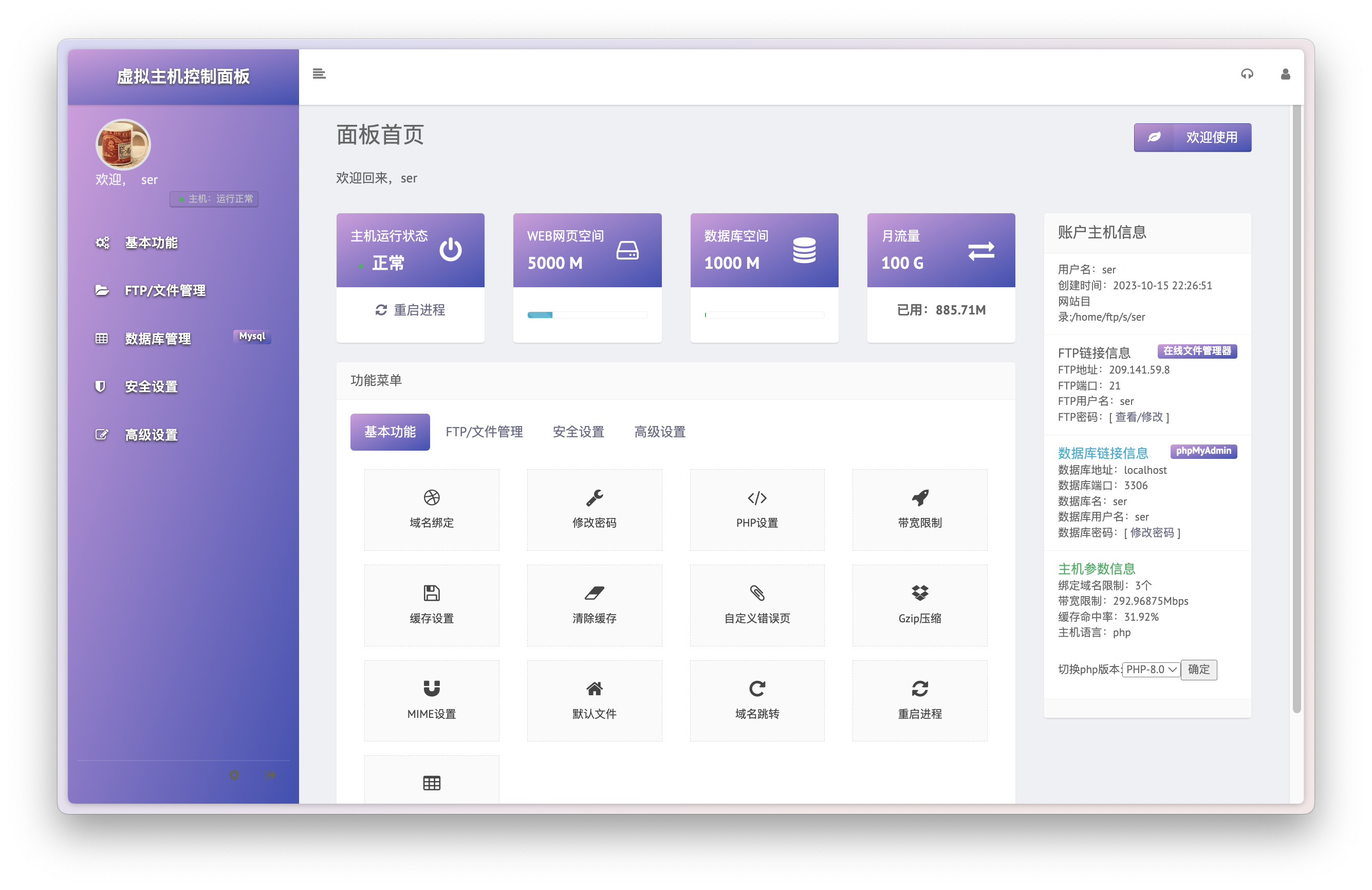虚拟主机,适合新手小白初次部署或访问量较小的站点,预装了常见环境、数据库及管理工具,可以通过控制面板便捷地管理托管网站!